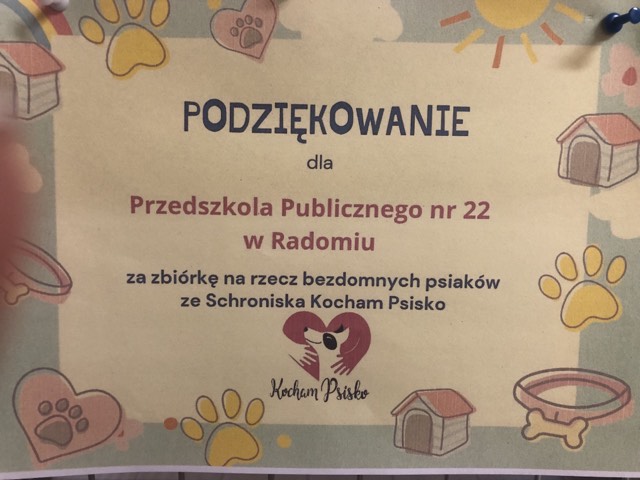 Podziękowanie za udział w akcji „Pełna miska dla psiaka ze schroniska” 31.10.2023