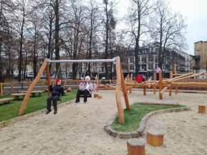 Po zakończonych warsztatach dzieci miały okazję pobawić się na nowo otwartym placu zabaw na ”starym skwerku” przy ulicy Malczewskiego.