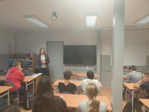 20 listopada 2025r. uczniowie klasy 8b wzięli udział w spotkaniu z przedstawicielką firmy RADMOT zorganizowanym w ramach realizacji Wewnątrzszkolnego Programu Doradztwa Zawodowego z cyklu Masterclass. Podczas wydarzenia młodzież miała okazję poznać specyfikę pracy w nowoczesnym przedsiębiorstwie produkcyjnym, dowiedzieć się, jakie umiejętności są cenione przez pracodawców oraz jak wygląda ścieżka kariery w branży przemysłowej. Przedstawicielka firmy RADMOT zachęcała uczniów do rozwijania kompetencji technicznych. Spotkanie pozwoliło uczniom lepiej zrozumieć oczekiwania rynku pracy i uświadomiło im znaczenie świadomego wyboru ścieżki edukacyjnej.