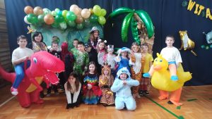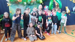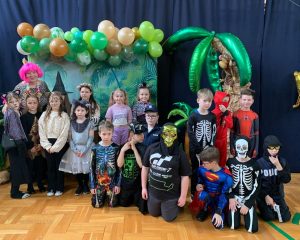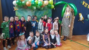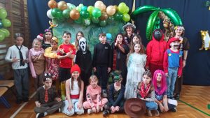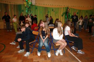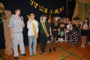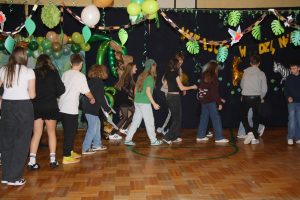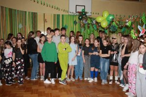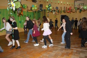Tego dnia sala zamieniła się w prawdziwy parkiet taneczny z efektownym oświetleniem i muzyką, która porwała wszystkich do wspólnej zabawy. Starsi uczniowie zachwycili kreatywnością swoich stylizacji oraz świetnym humorem. Nie zabrakło tańców przy ulubionych hitach, konkursów z nagrodami oraz integracyjnych zabaw, które dostarczyły wielu emocji i uśmiechu.