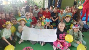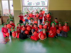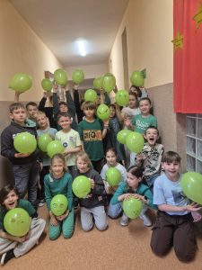 Aby uczcić nadejście tej wyjątkowej pory roku, cała społeczność szkolna wzięła udział w niezwykłej akcji. Każda klasa wcześniej wylosowała kolor, w którym uczniowie mieli przyjść ubrani tego dnia. Korytarze naszej szkoły zamieniły się w prawdziwą tęczę!